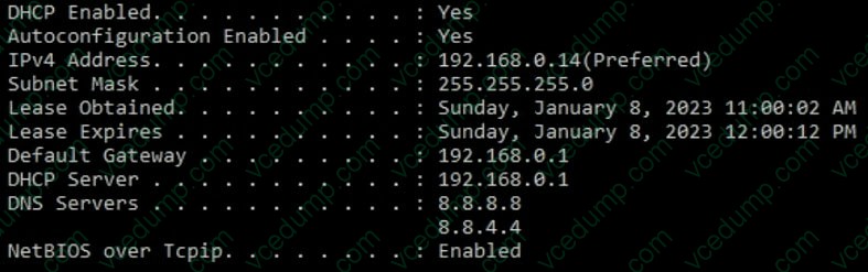 Computers in a small office are unable to access companypro.net. You run the ipconfig command on one of the computers. The results are shown in the exhibit.