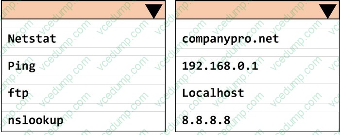 Which command should you use? Complete the command by selecting the correct options from each drop- down lists.