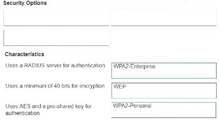 Move the security options from the list on the left to its characteristic on the right. You may use each security option once, more than once, or not at all.