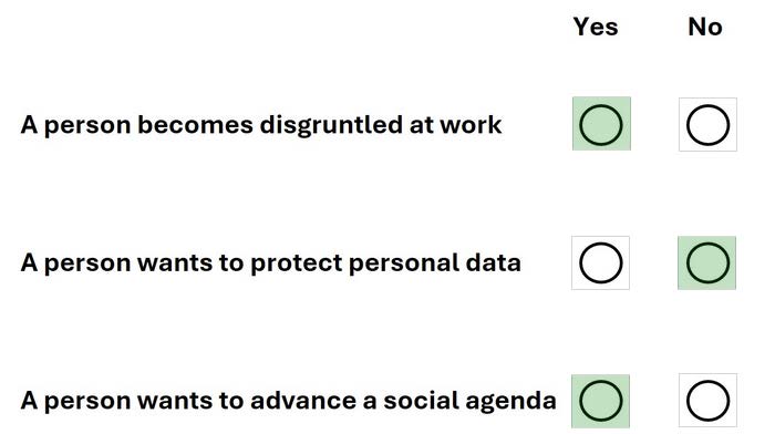 For each statement, select True if it is a common motivation to commit cyber attacks or False if it is not.