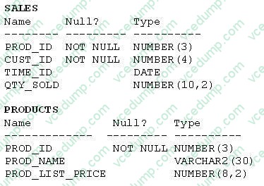 View the Exhibit and examine the structure of the SALES and PRODUCTS tables.