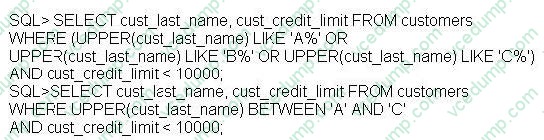 You want to generate a report showing the last names and credit limits of all customers whose last names start with A, B, or C, and credit limit is below 10, 000.