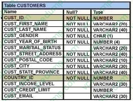 A. 1View the Exhibit and examine the structure of the CUSTOMERS table.