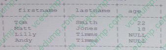 A. By the default SQL_MODE of the serverYou want to compare all columns of table A to columns with matching names in table B. You want to select the rows where those have the same values on both tables. Which query accomplishes this?
