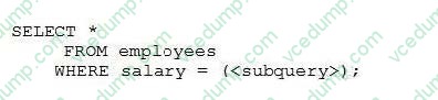 A. Both the query and the subquery can select only zero rows or one row.Nowadays, the certification exams become more and more important and required by more and more enterprises when applying for a job. But how to prepare for the exam effectively? How to prepare for the exam in a short time with less efforts? How to get a ideal result and how to find the most reliable resources? Here on Vcedump.com, you will find all the answers. Vcedump.com provide not only Oracle exam questions, answers and explanations but also complete assistance on your exam preparation and certification application. If you are confused on your 1Z0-071 exam preparations and Oracle certification application, do not hesitate to visit our Vcedump.com to find your solutions here.