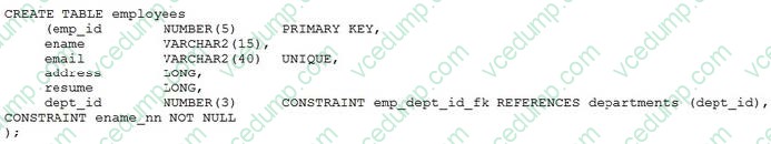 A. The foreign key constraint on DEPT_ID must be defined at the table level instead of the column level.Examine this partial statement: