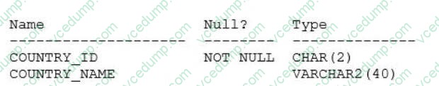 A. 1, 2 and 3Examine the description of the COUNTRIES table: