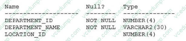 Examine the description of the DEPARTMENTS table: