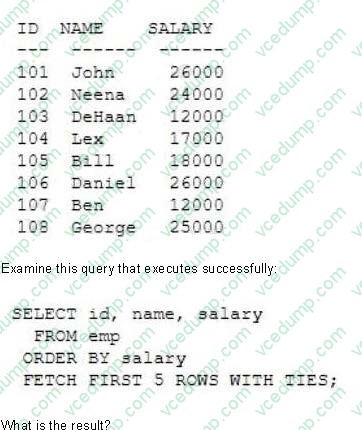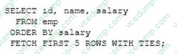 A. It will return the five employees earning the lowest salaries, in ascending order.User HR has CREATE SESSION, CREATE ANY TABLE and UNLIMITED TABLESPACE privileges. User SCOTT has CREATE SESSION, CREATE TABLE and UNLIMITED TABLESPACE privileges. HR successfully executes this statement: