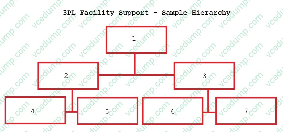 A. You dismiss the concern because a change in the lock code has no impact on either the WMS Cloud or host inventories.The above diagram shows a typical Third Party Logistics (3PL) structure. Identify the Facility, Company, and User levels, as applicable, in sequential order (that is, the proper label for box 1 is listed 1st in sequence).