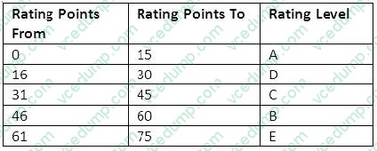 for the goals section is 20. The table shows the rating point ranges set up for the overall section rating model to assign the rating level for the overall rating.