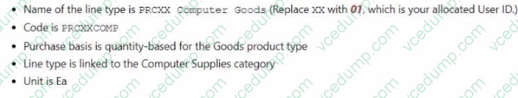 Name of the line type is PRCXX Computer Goods (Replace xx with 01, which is your allocated User ID.)