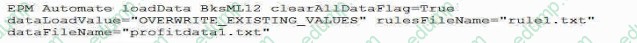 A. It will fail if the user does not have the Service Administrator role. B. It will load data from profitdata1.txt data then run all rules in rule1, txt C. It will fall If ruiei.txt and profitdatai.txt are not uploaded to the profitinbox first. D. It will clear data from the slice of the database referenced in the data file and leave other data intact.
