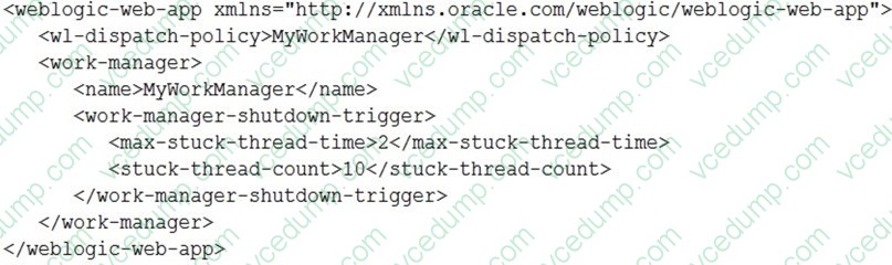 You investigate and find a Web Module named MyApp with the following deployment descriptor weblogic.xml:
