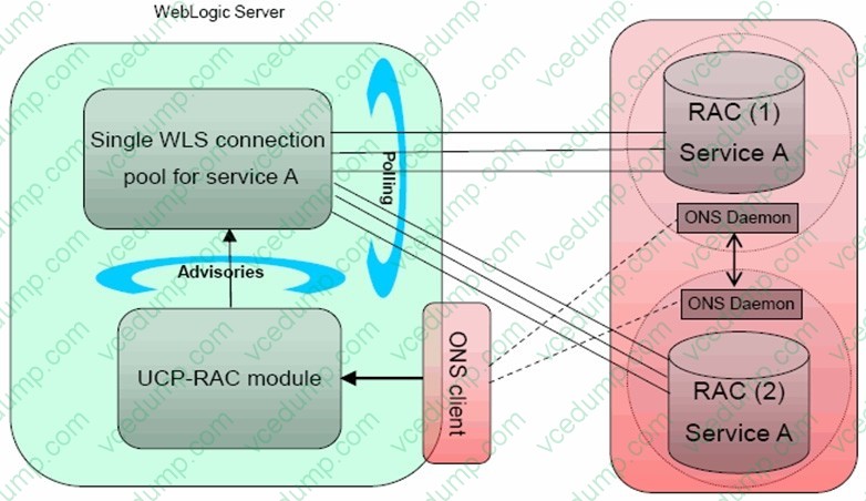 A. depicts an Active GridLink Data Source between WebLogic Server and an Oracle Database service that includes two RAC nodesWhat is the first action to take during a Rolling Update? (Choose the best answer.)