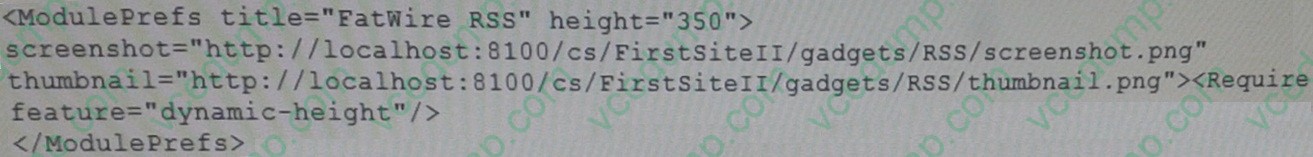 A. ModuIePrefs defines properties and dependencies for a gadget. B. ModulePrefs defines styles for a gadget. C. ModuIePrefs defines data access URLs for a gadget. D. ModulePrefs defines user preferences for a gadget.