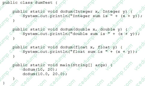 A. double sum is 30.0 float sum is 30.0Given the code fragment: