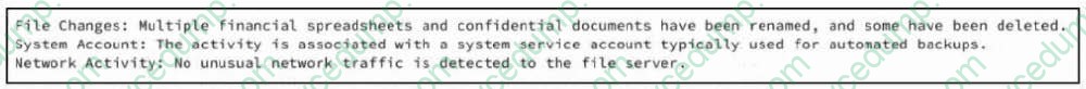A. An insider threat compromised the service account to delete sensitive data.A software development company develops high-end technology for the customer that will go through the HIPAA audit program. The technology will be hosted in the cloud, and the healthcare, employee names, and contact information will be
