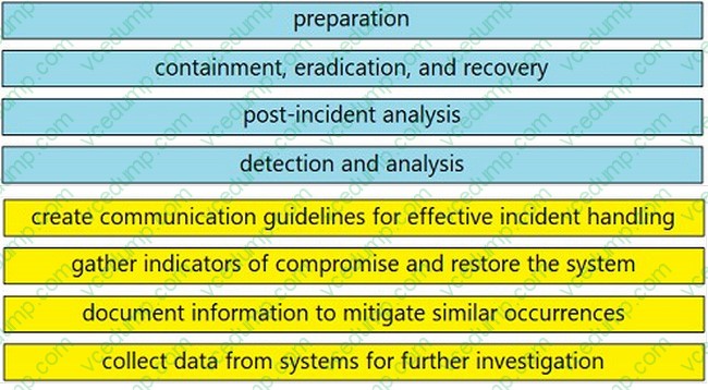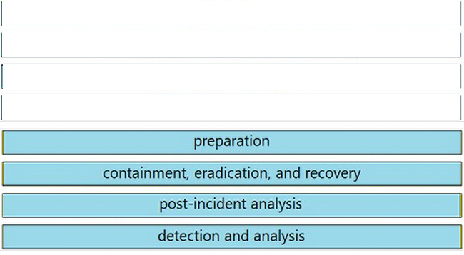 Drag and drop the elements from the left into the correct order for incident handling on the right.