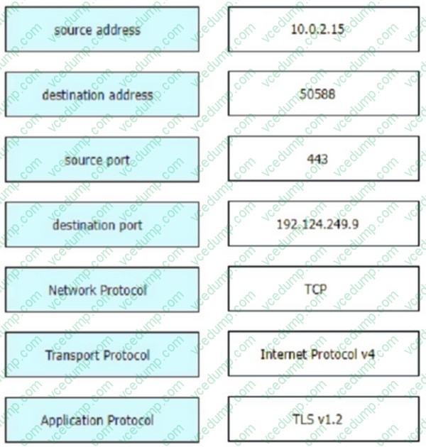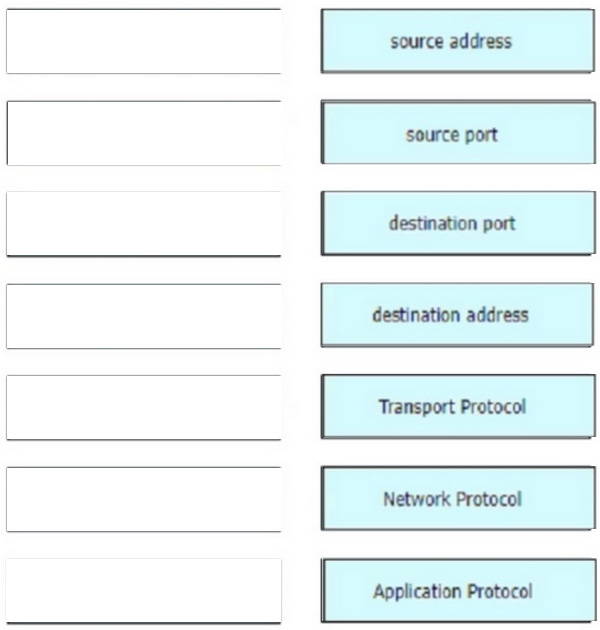 Drag and drop the element names from the left onto the corresponding pieces of the PCAP file on the right.