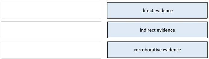 Drag and drop the type of evidence from the left onto the description of that evidence on the right.