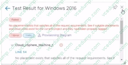 An administrator is testing a newly created Windows 2016 template in VMware Aria AutomationAssembler. While using the Test option from within the VMware Aria Automation template, the attached error appears. What is a possible cause for this error message?
