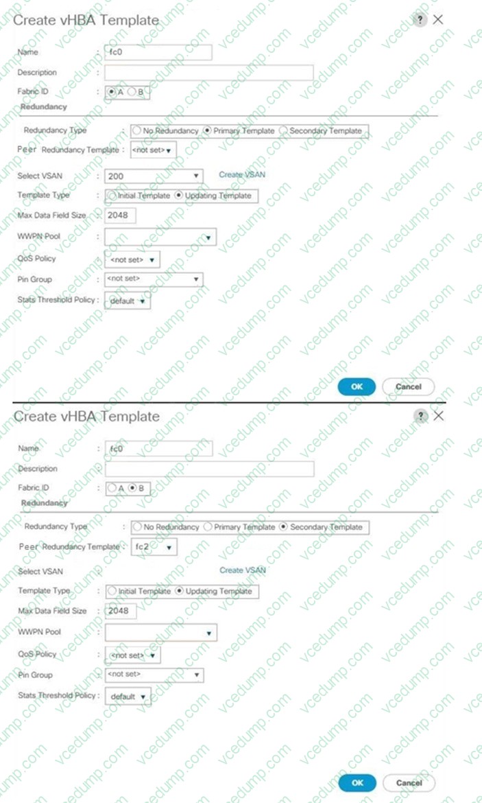 A. All changes to the primary template are synchronized to the secondary template. B. Both vHBA templates for the pair are attached simultaneously. C. Each template in the pair shares the WWPN pools. D. Each template in the pair shares the same VSAN.