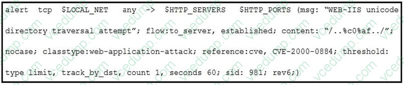 C. False Positive alert explanation: The alert shown is based on a Snort rule for a Unicode directory traversal attack against IIS web servers (Microsoft platform). The key detail here is the payload content"../..%c0%af../"which is a classic IIS-specific exploit related to CVE-20000884 . Since the company only uses Unix systems , they are not vulnerable to this IIS-specific attack. Therefore, these alerts are triggered by irrelevant traffic or misapplied signatures, resulting in False Positives .