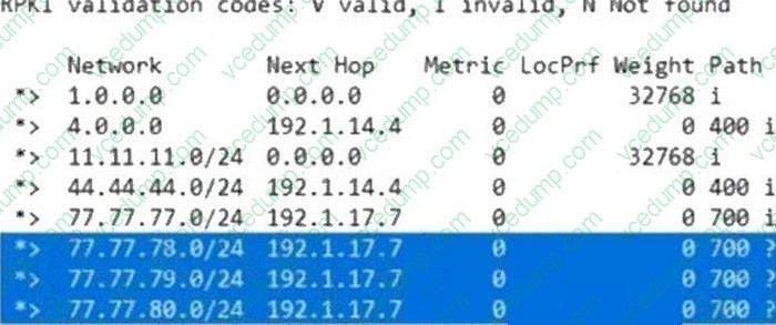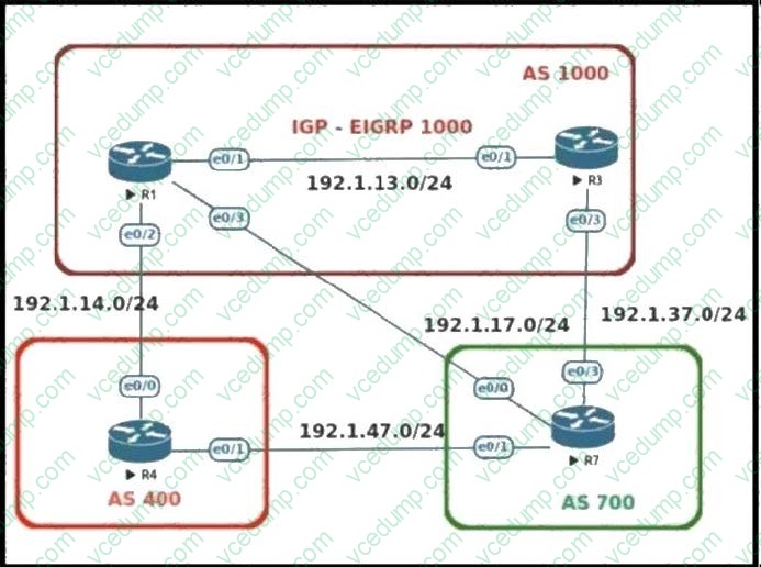 A. R1 route-map RC permit 10 match ip address 1 set metric 1 B. R1 route-map RC permit 10 match ip address 1 set origin igp C. R7 route-map RC permit 10 match ip address 1 set origin igp D. R7 route-map RC permit 10 match ip address 1 set metric 1