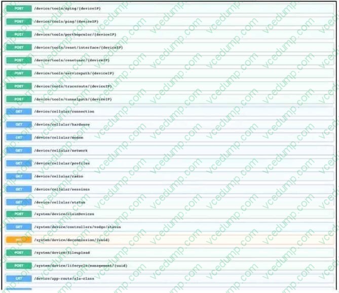 A. Use the device/celluiar/status vManage resource URI to ensure sufficient radio signal strength.Nowadays, the certification exams become more and more important and required by more and more enterprises when applying for a job. But how to prepare for the exam effectively? How to prepare for the exam in a short time with less efforts? How to get a ideal result and how to find the most reliable resources? Here on Vcedump.com, you will find all the answers. Vcedump.com provide not only Cisco exam questions, answers and explanations but also complete assistance on your exam preparation and certification application. If you are confused on your 300-435 exam preparations and Cisco certification application, do not hesitate to visit our Vcedump.com to find your solutions here.