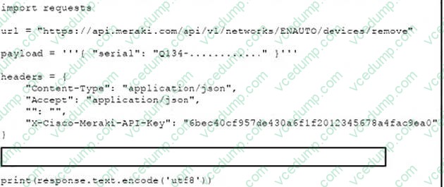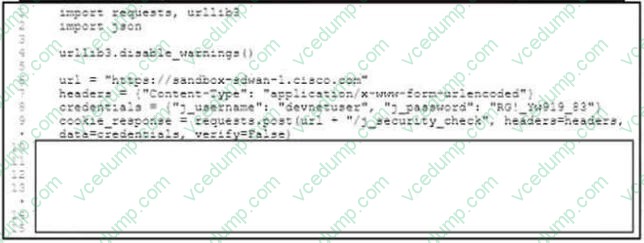 Which line of code must be added to the box where the code is missing to complete the python request?