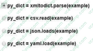 If the data included in the code was saved to a python variable named "example". Which line of code converts if for praising?