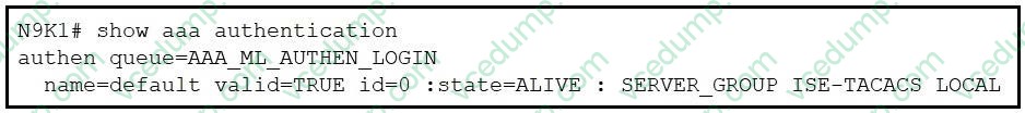 Refer to the exhibit. A Cisco Nexus 9000 Series Switch must be configured to use only TACACS+ servers for default authentication. The engineer notices that the activity fails to run as expected. Which code snippet resolves the issue?