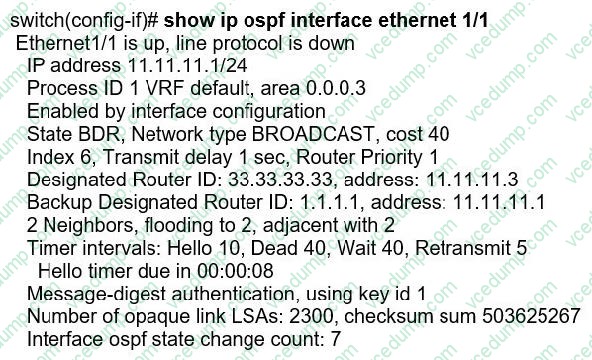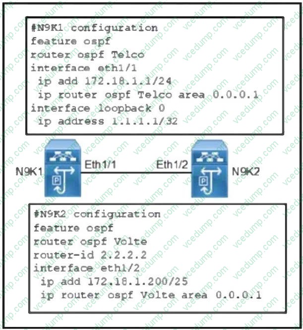 Refer to the exhibit. Two Cisco Nexus 9000 Series Switches fail to establish OSPF adjacency. Which configuration resolves the issue?