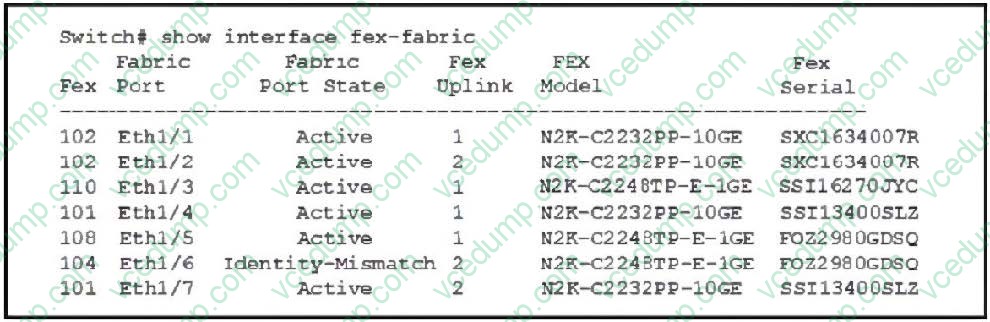 A. Associate port Eth1/5 to FEX 104.An engineer implemented the EEM applet shown below to send a syslog message when an interface goes down: