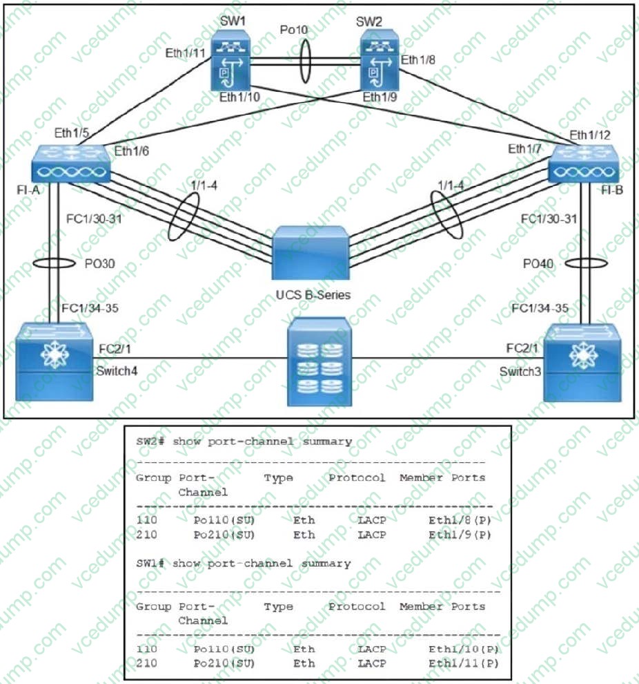 Two Cisco Nexus 9000 Series Switches, SW1 and SW2, fail to form a virtual port channel toward both fabric Two Cisco Nexus 9000 Series Switches, SW1 and SW2, fail to form a virtual port channel toward both fabric interconnect switches. Which set of ports must be allocated to which port channels to resolve the issue?