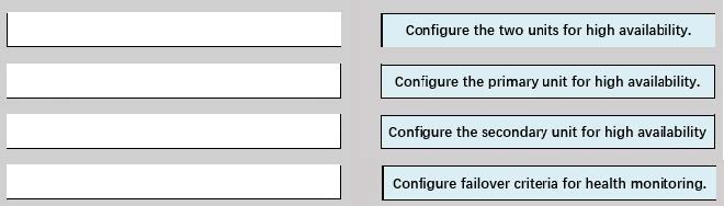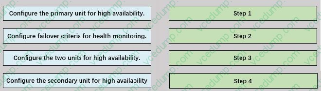 An engineer must configure high availability on two Cisco Secure Firewall Threat Defense appliances. Drag and drop the configuration steps from the left into the sequence on the right.