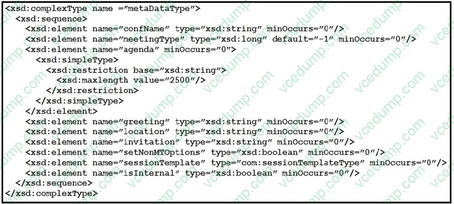 Refer to the exhibit. Based on this Webex Meetings XML API schema snippet, which XML object is a valid