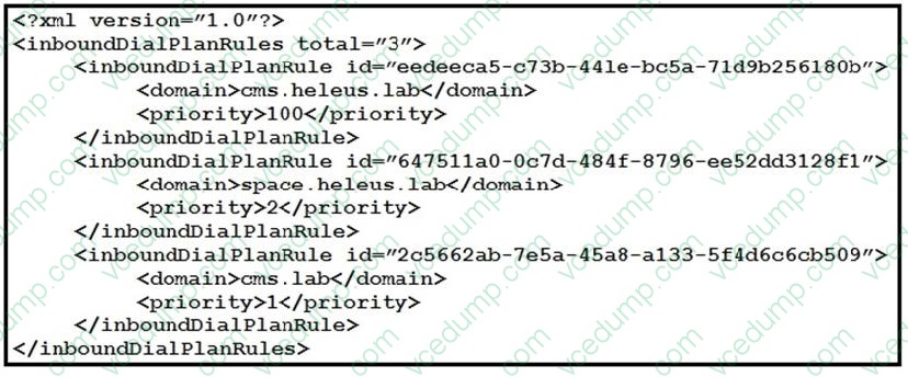 Refer to the exhibit. Which API call made to Cisco Meeting Server removes the inbound dial plan rule matching cms.lab domain?