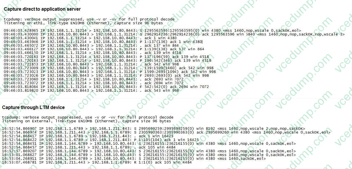 A company uses a complex piece of client software that connects to one or more virtual servers hosted on an LTM device. The client software is experiencing issues. An LTM Specialist must determine the cause of the problem.