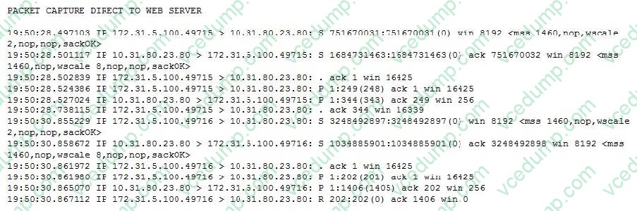 A. Enable port 443 on the virtual server.Refer to the exhibits.