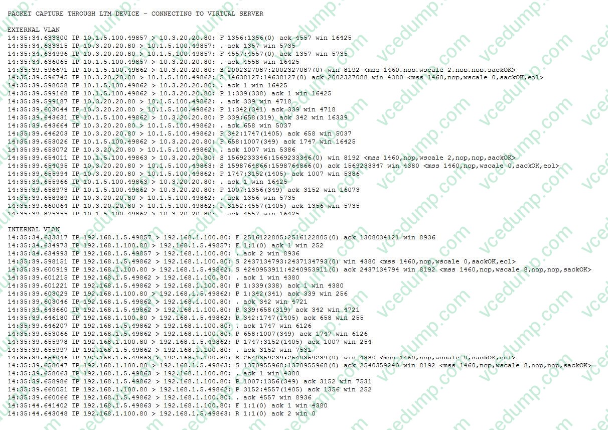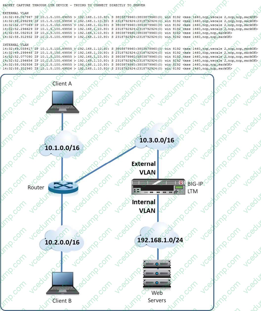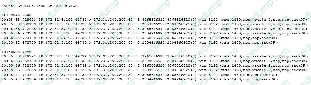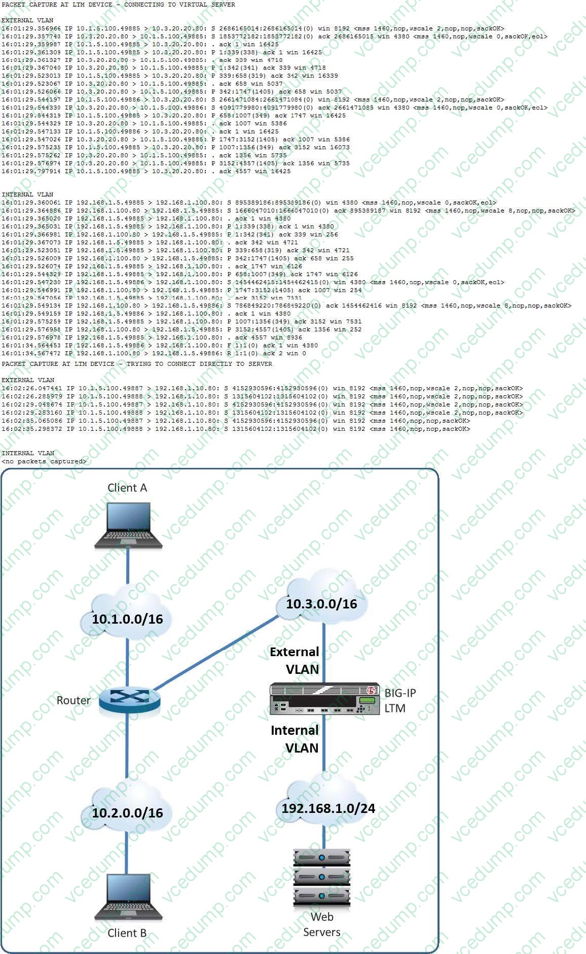 A. Enable a SNAT pool on the LTM device.Refer to the exhibit.