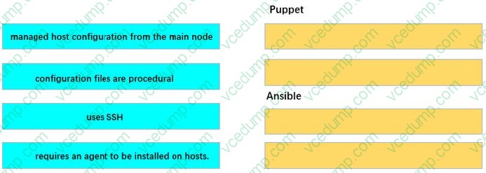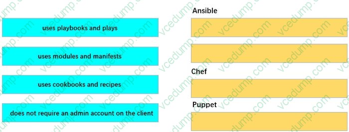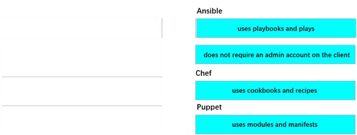 DRAG DROP Drag and drop the configuration management tools from the left onto the configuration styles they use on the right