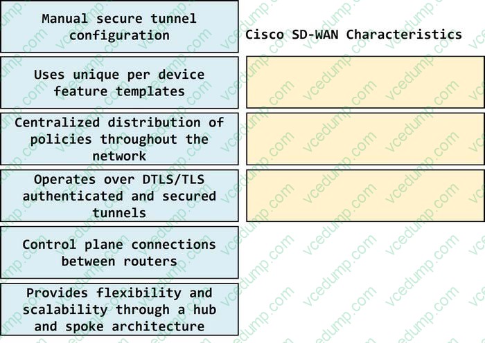 Drag and drop the characteristics of Cisco Catalyst SD-WAN from the left onto the right. Not all options are used.