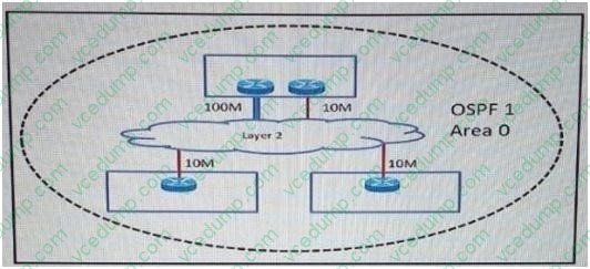 An enterprise has three sites over a Layer 2 Metro Ethernet ELAN service. 100Mb/s and 10 Mb/s links have been provisioned to provide redundancy for the head office. When OSPF routing enabled to provide connectivity and the correct bandwidth statement has been applied to each interface, the branch sites observe two equal-cost routes to the head office. The enterprise wants to send all traffic through the 100 Mb/s link and use the 10Mb/S link strictly as a backup. Which OSPF network type must be set to ensure that the head office 100 Mb/s circuit is preferred over the 10 Mb/s circuit, at the same time minimize the amount of configuration required on all of the routers throughout the network?
