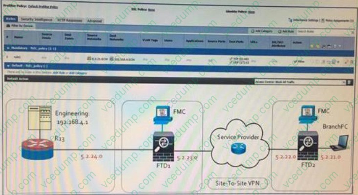 Refer to the exhibit. There is no ICMP connectivity from BranchPC to the Engineering server at 192.168.4.1. Based on the provided FTD1 access policy and network topology in the exhibits.