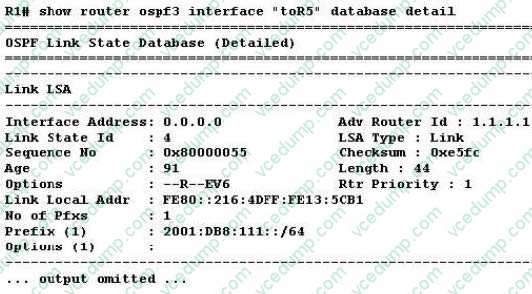 Assume that OSPFv3 is properly configured on all routers and that router R4 advertises its system prefix into Area 0.