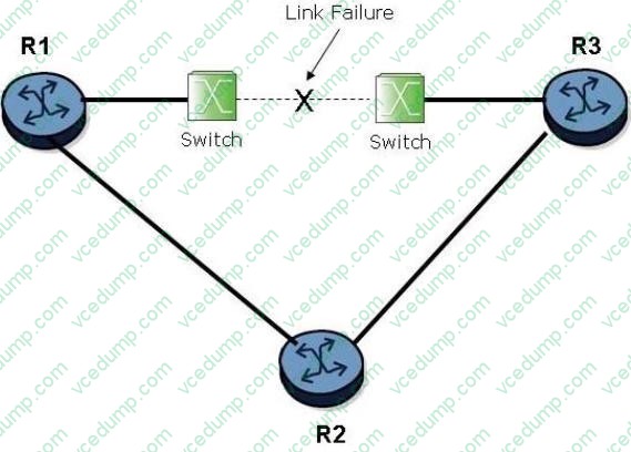 Before the link failure, all routers have operational OSPF adjacencies between them and there is a BFD session between routers R1 and R3. After the link failure, which of the following affects the IGP convergence time?