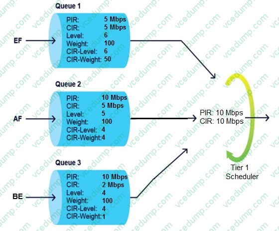 A. PIR = 4 Mbps, CIR = 1 MbpsWhich of the following statements about the default scheduler in the Nokia 7750 SR is TRUE?