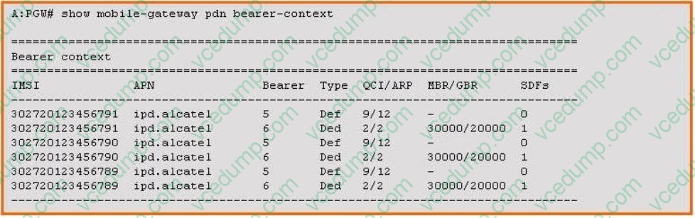 A. Show mobile-gateway pdn ref-point-peers gxBased on the information shown in the exhibit, how many EPS bearers has the PGW created in total for all UEs?
